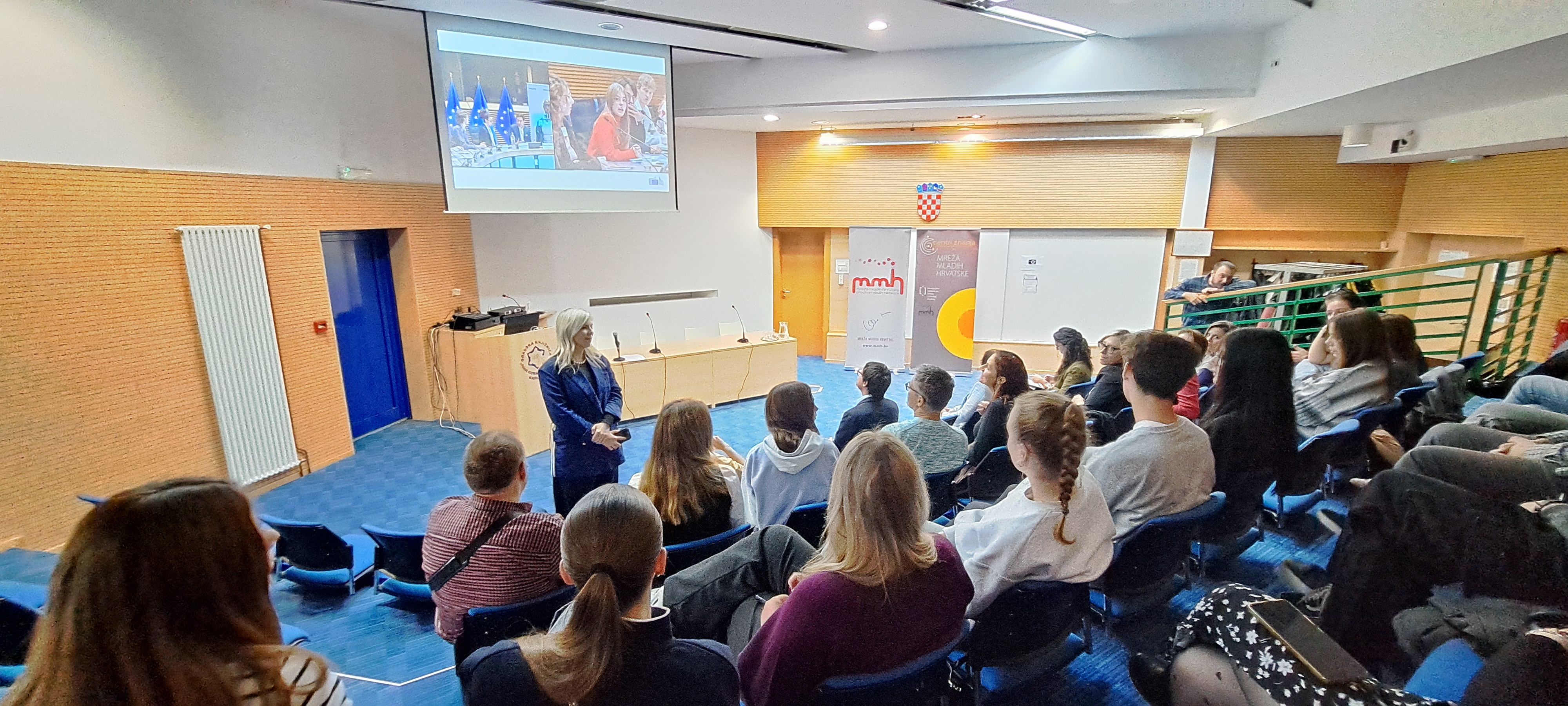 Potom su uslijedila izlaganja gostiju događanja Andree Čović Vidović, zamjenice voditeljice Predstavništva i voditeljicu medija ispred Predstavništva Europske komisije u Hrvatskoj te Josipa Miličevića, glavnog tajnika MMH-a. Gosti su sudionicima_cama govorili o europskim i nacionalnim politikama i mjerama za podršku mladima, mogućnostima i prilikama za mlade koje pruža Europska komisija, ali i o izazovima te položaju mladih na tržištu rada.